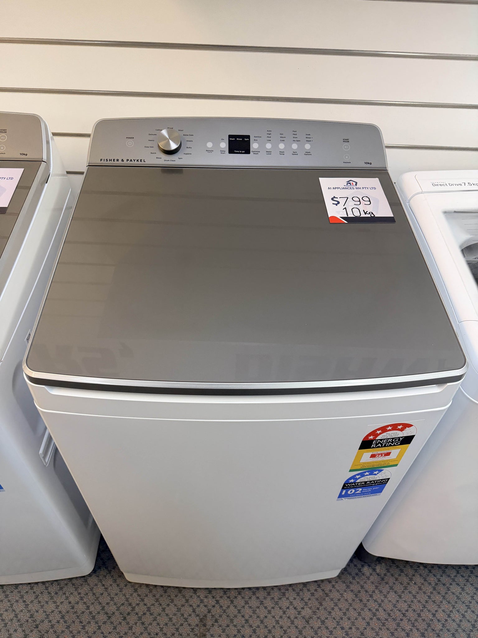 Keywords: Fisher & Paykel WL1064G1, 10 kg washer, top-load washing machine, UV sanitise washer, white washing machine, family washer, Perth whitegoods, second-hand washer, washer delivery Perth