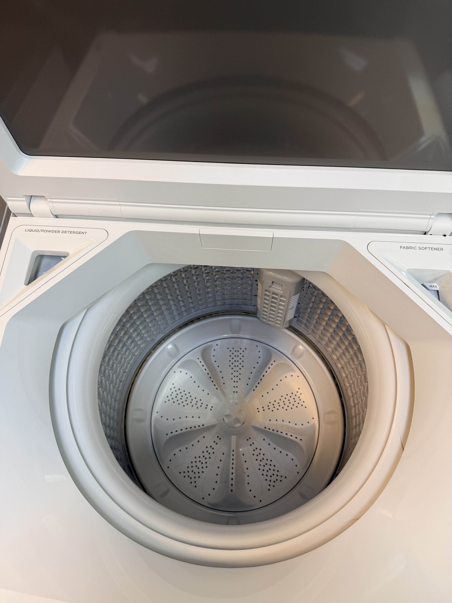 Drum / Tub: Stainless-Steel Drum with low-profile agitator and “pillow drum” design (gentle on clothes)