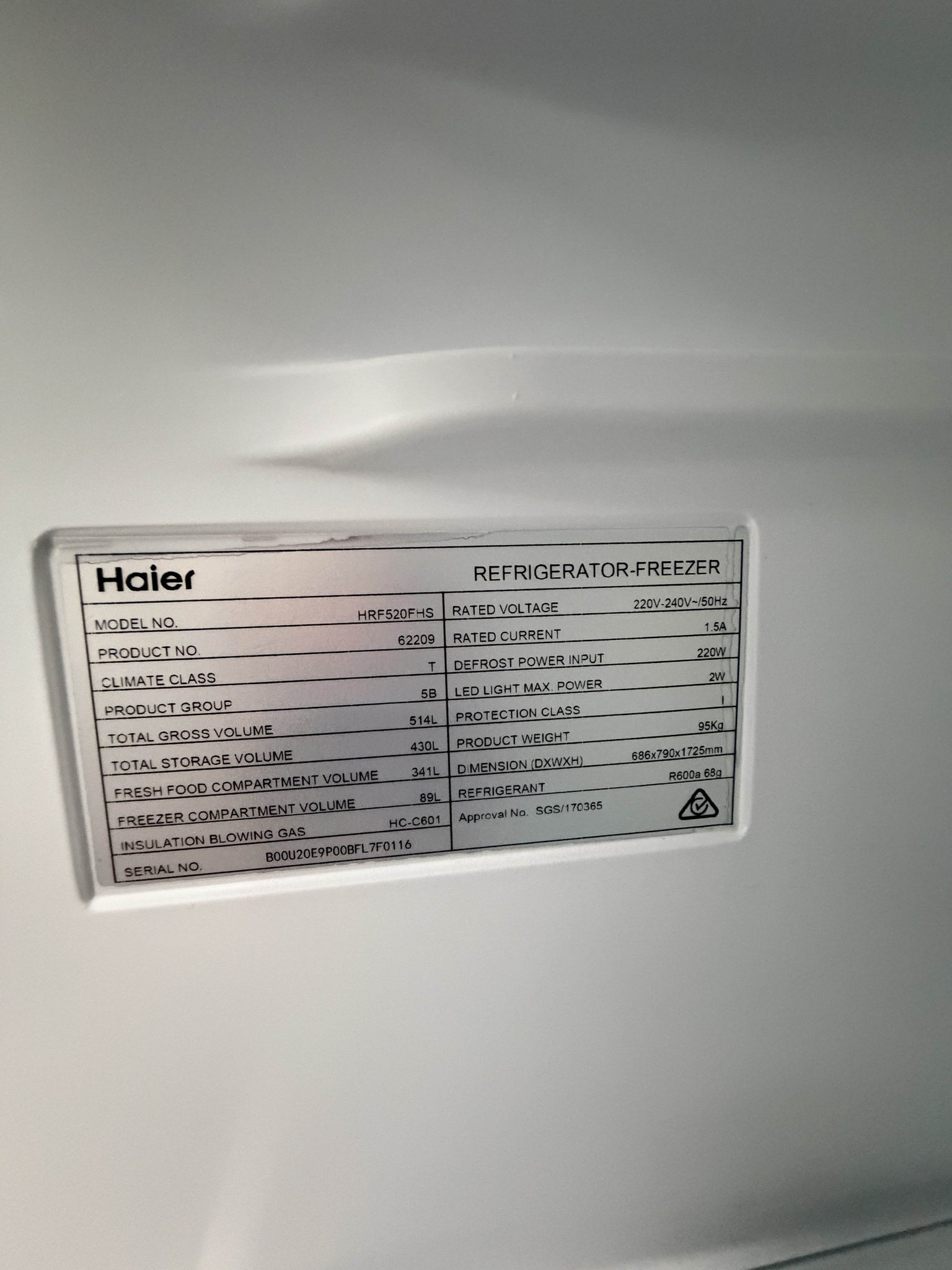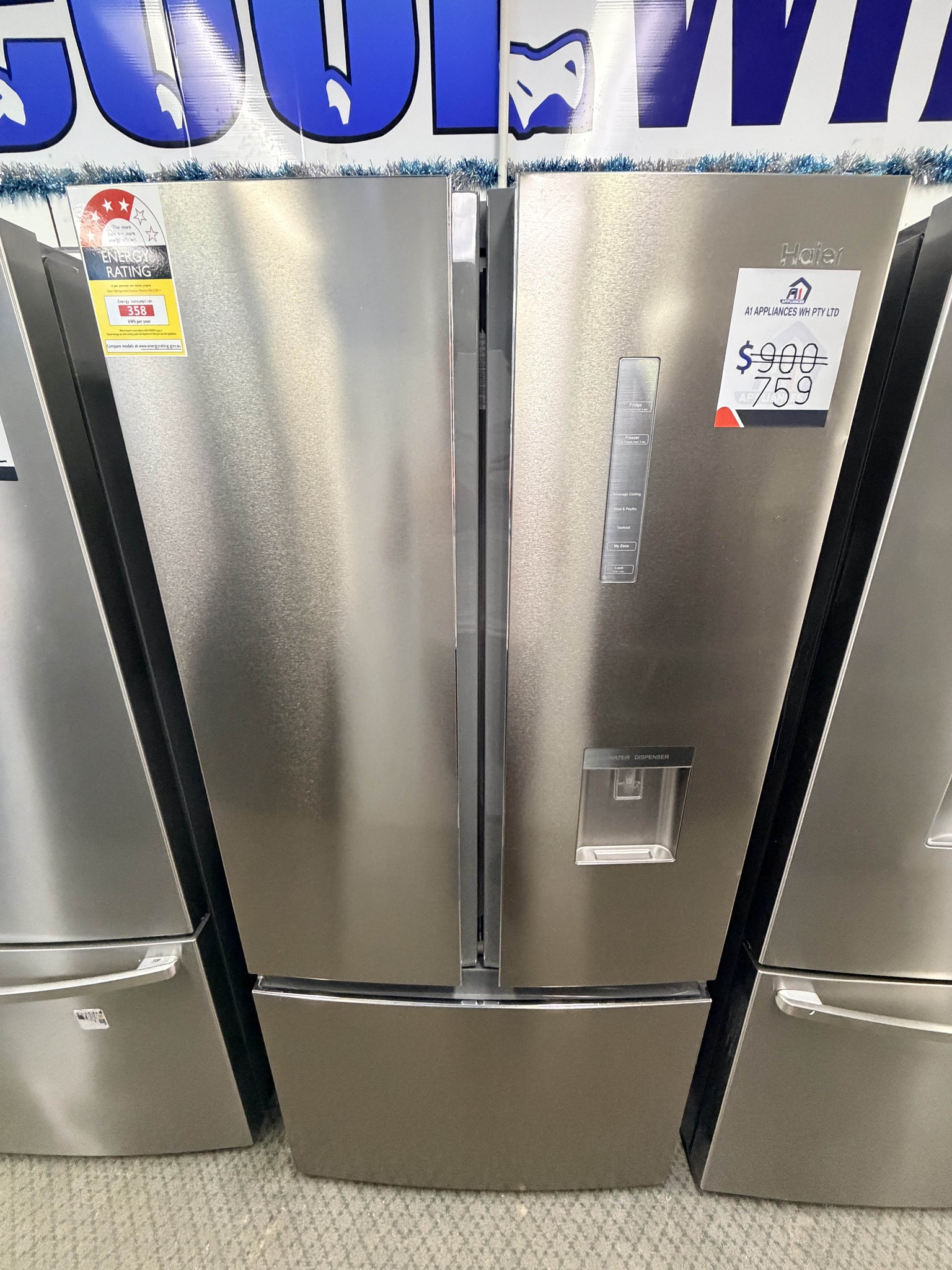Keywords: Haier HRF520FHS, 489 L fridge, French-door refrigerator, water dispenser fridge, My Zone drawer fridge, frost-free fridge, family fridge, Satina fridge, freezer drawers, fridge delivery Perth