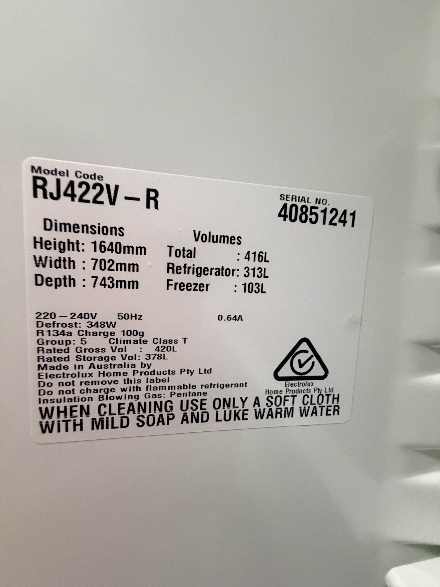 Keywords: Westinghouse RJ422V‑R, 420L fridge freezer, top‑mount fridge freezer, white fridge freezer, frost‑free fridge, family fridge, Perth whitegoods, second‑hand fridge, fridge delivery Perth.