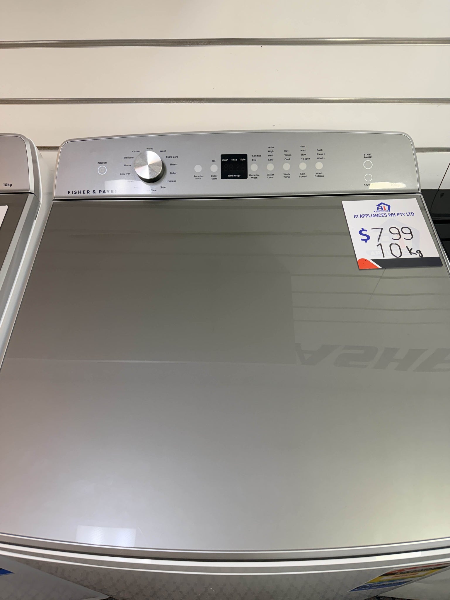 Fisher & Paykel WL1064G1, 10 kg washer, top-load washing machine, silver washing machine, large capacity washer, family washer, Fisher & Paykel washer, Perth whitegoods, second-hand washer, washer delivery Perth