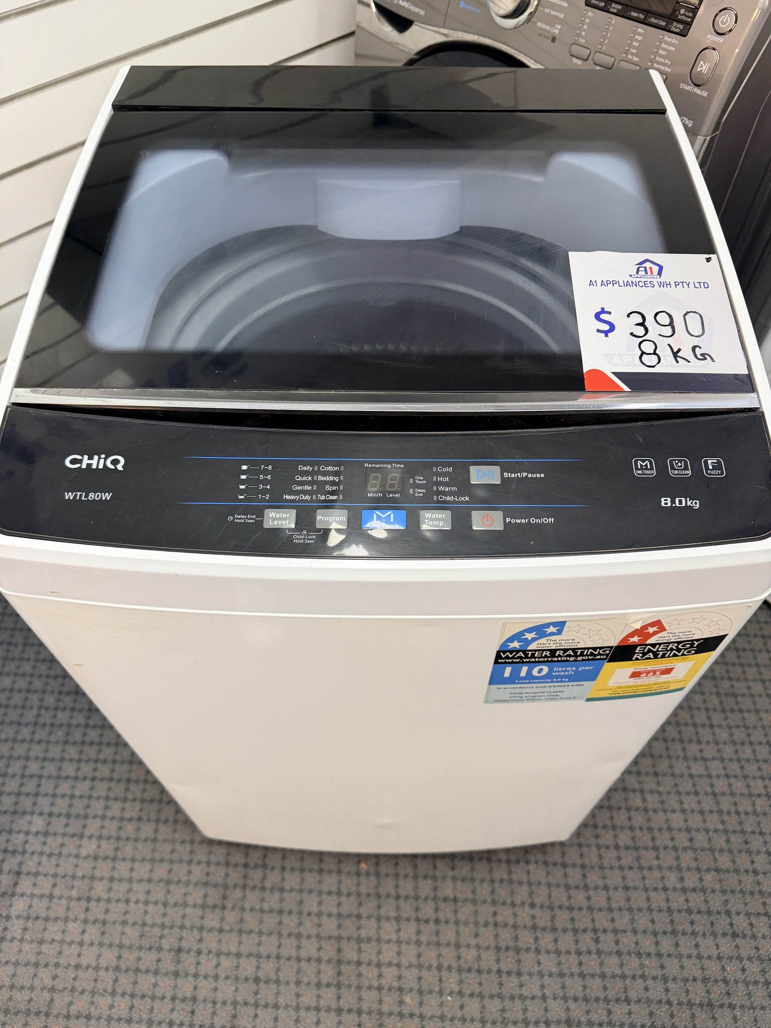 Keywords: CHiQ washing machine, top loader, 8kg capacity, smart wash, auto load sensing, energy efficient, family washing machine, Perth delivery, refurbished appliance, second hand washing machine, whitegoods