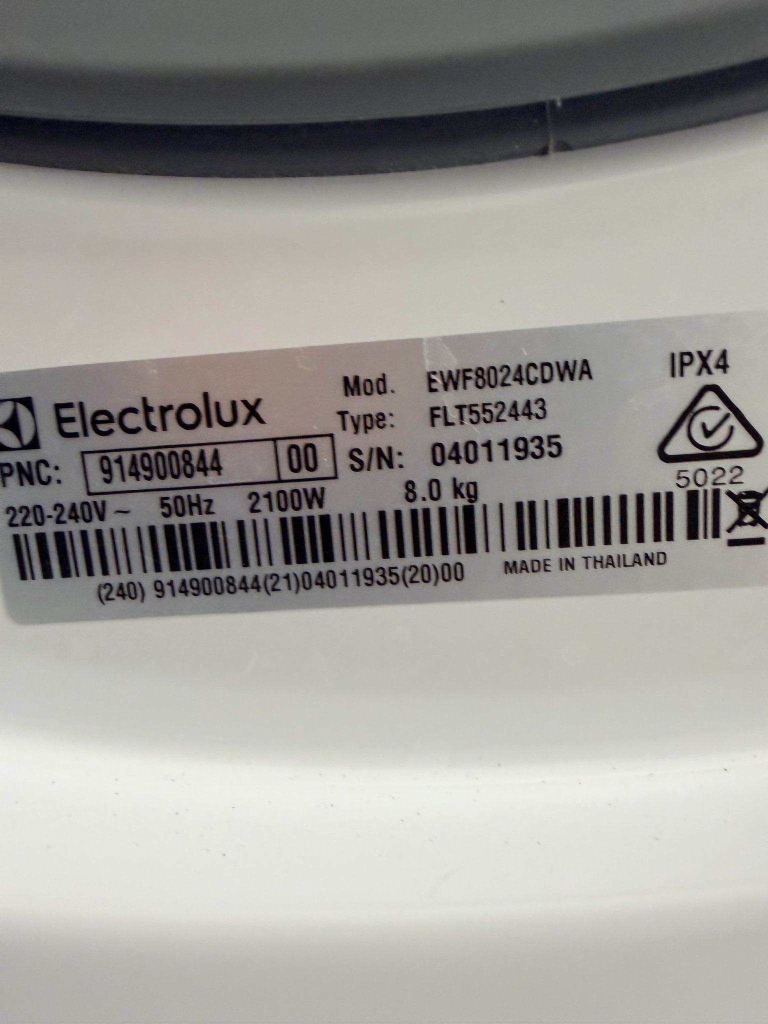 Electrolux EWF8024CDWA, 8 kg washer, front-load washing machine, white washing machine, JetSystem washer, Woolmark certified wash, family washer, Perth whitegoods, second-hand washer, washer delivery Perth