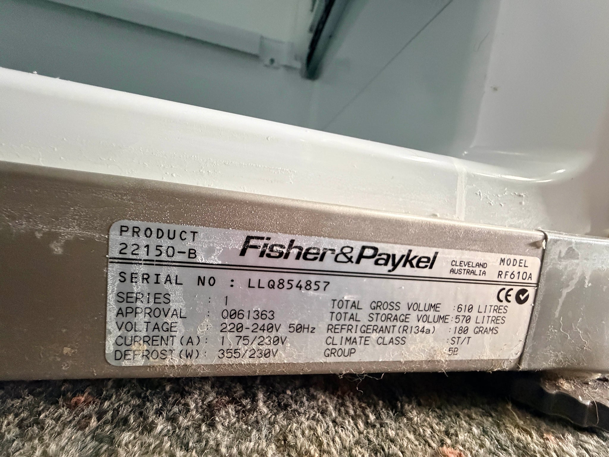 Keywords: Fisher & Paykel RF610A, 569 L fridge, French‑door refrigerator, ActiveSmart fridge, stainless fridge, large family fridge, Perth whitegoods, second‑hand fridge, Perth delivery