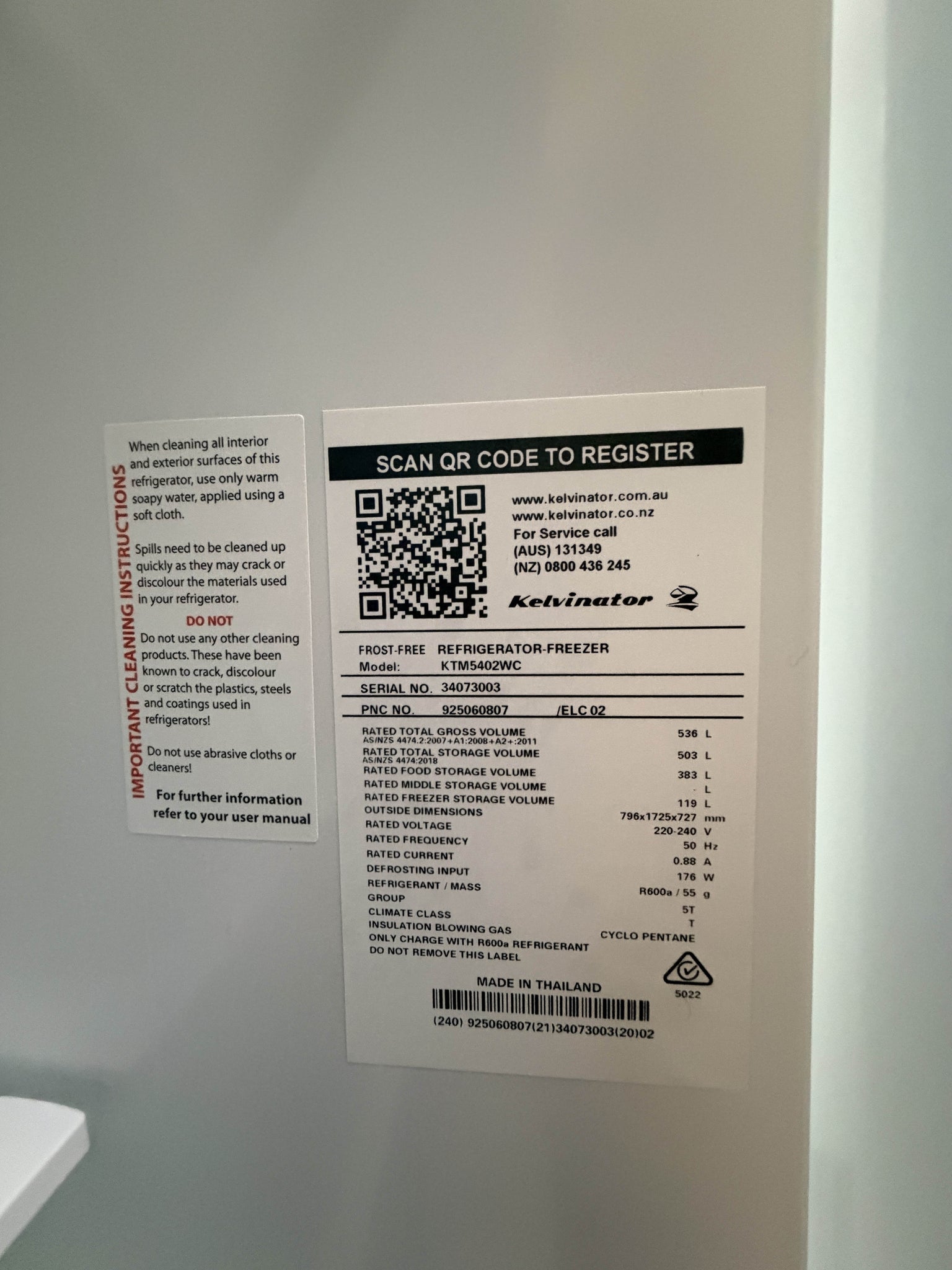 Kelvinator 2 KTM5402WC, 540 L fridge, top mount refrigerator, white fridge, Kelvinator large fridge, family refrigerator, frost free fridge, refurbished fridge Perth, Perth whitegoods, fridge delivery Perth