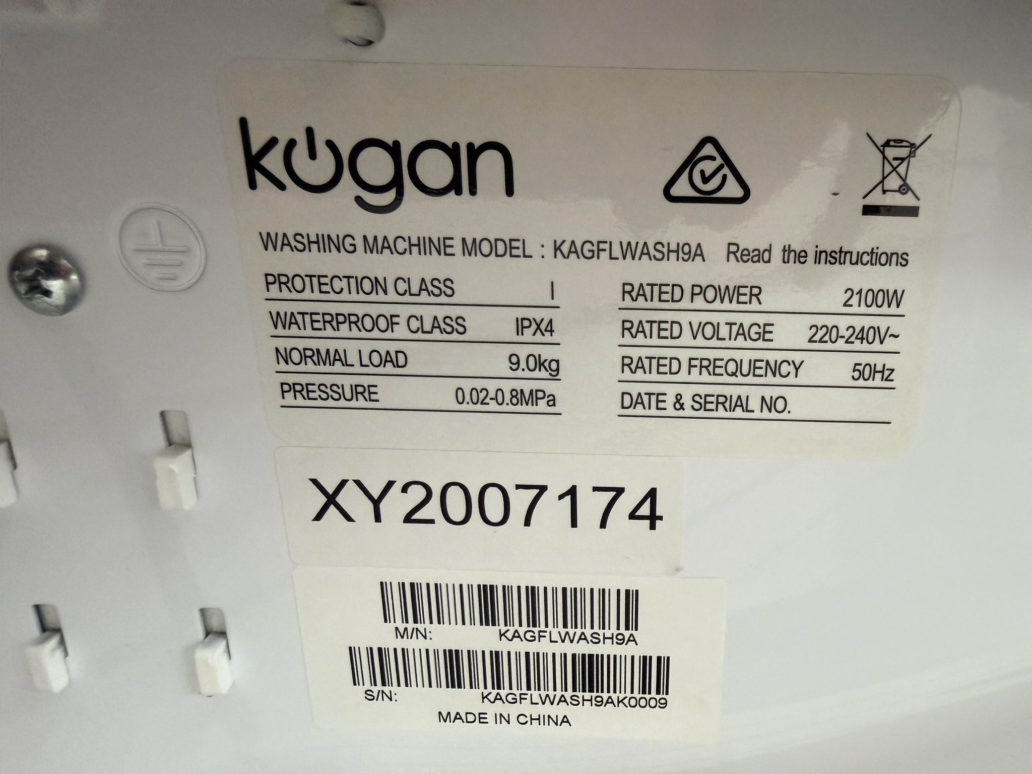 Keywords: Kogan washing machine, front loader, 9kg capacity, Anti-Bac cycle, 1200 RPM, energy efficient, white, Perth delivery, refurbished appliance, second hand washing machine, whitegoods
