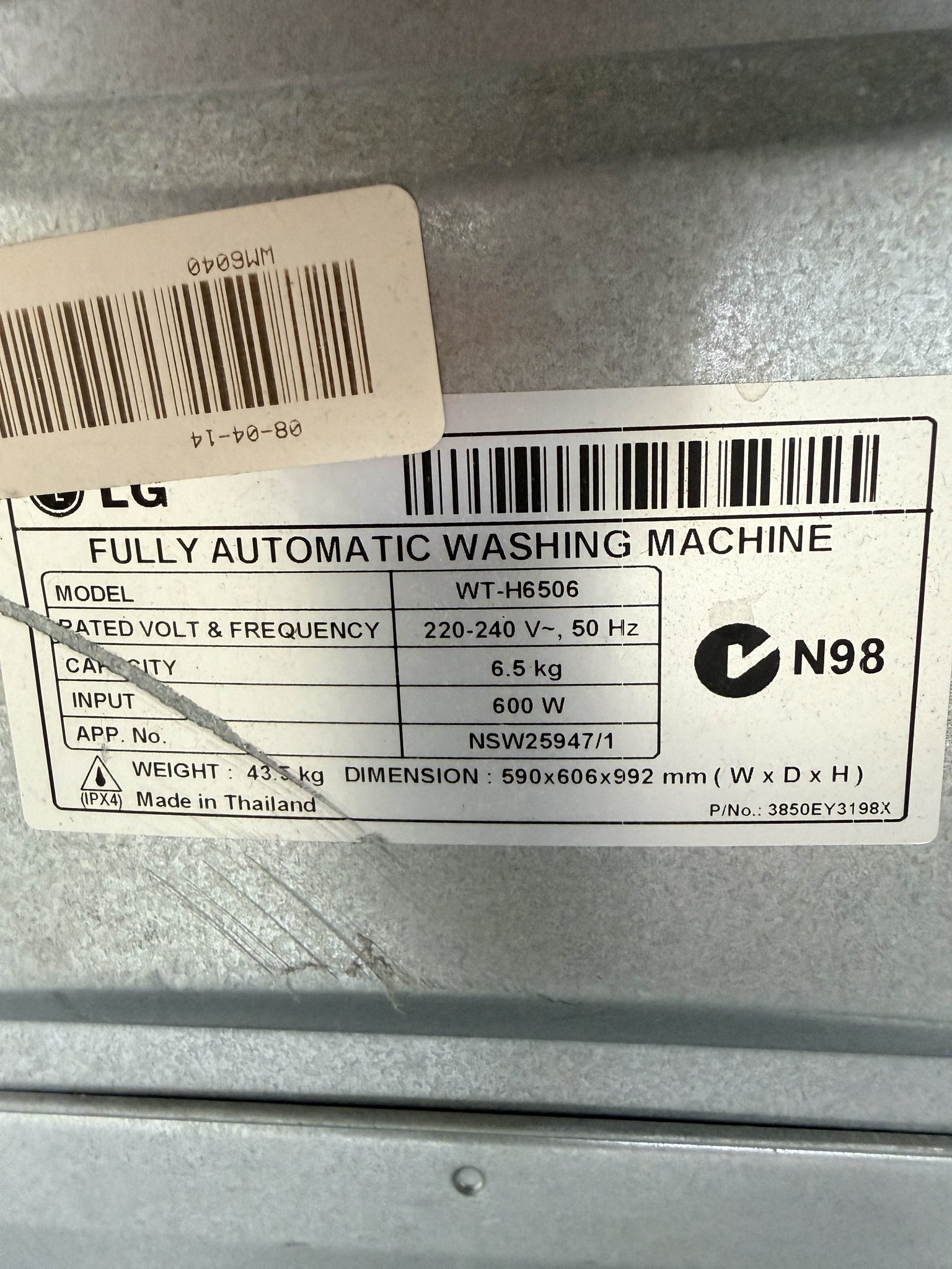 LG WT-H6506, 6.5 kg washing machine, top load washer, LG washing machine, compact washer, refurbished washing machine Perth, Perth whitegoods, washing machine delivery Perth