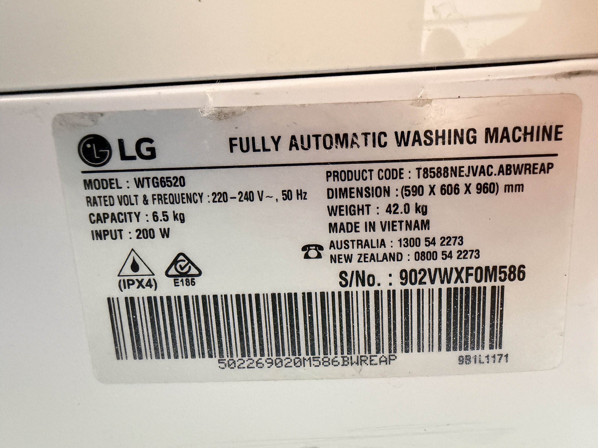LG WTG6520, 6.5 kg washer, top-load washing machine, white washing machine, small capacity washer, family washer, 6 Motion™ washer, Perth whitegoods, second-hand washer, washer delivery Perth