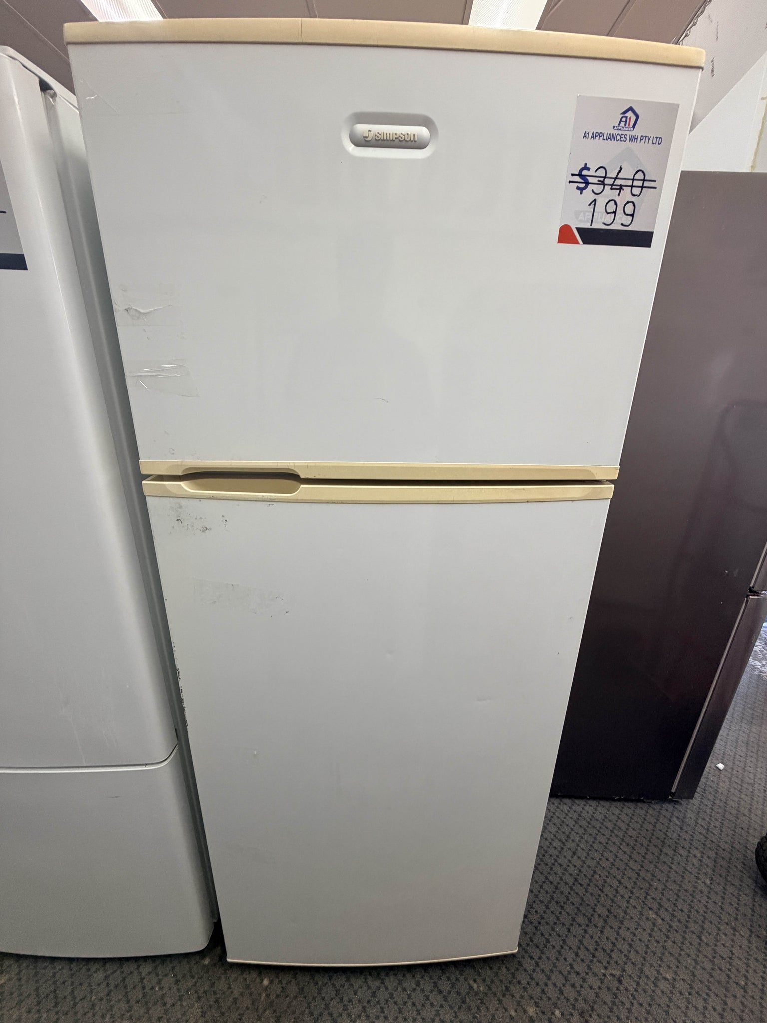 Simpson SR390C-R, 393 L fridge, top mount refrigerator, white fridge, Simpson fridge, family refrigerator, frost free fridge, refurbished fridge Perth, Perth whitegoods, fridge delivery Perth